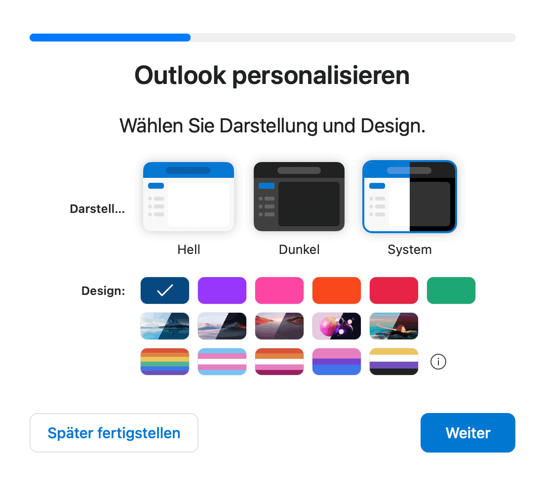 Möglicherweise werden Sie aufgefordert, Outlook zu personalisieren. Dies können Sie jetzt machen, für die E-Mail Konfiguration haben die Einstellungen keinen Einfluss.