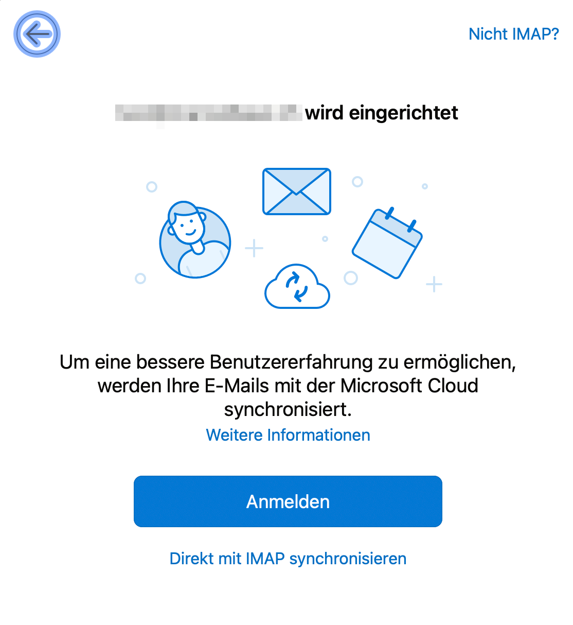 Sie können wählen, ob die Mails zwischen Ihrem Mac und unserem Mailserver über Microsoft-Server synchronisiert werden sollen. Wir raten Ihnen dringend von dieser Möglichkeit ab, da es datenschutztechnisch sehr heikel ist (Microsoft speichert Ihre Mailbox-Zugangsdaten und E-Mails) und in der Praxis zu technischen Problem geführt hat.