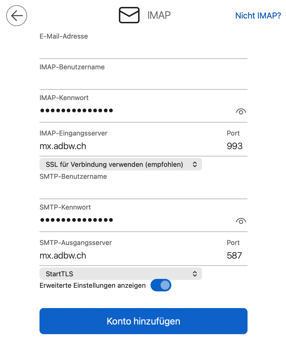 - SMTP-Ausgangsserver: mx.adbw.ch